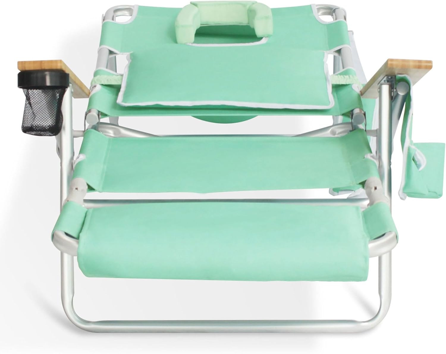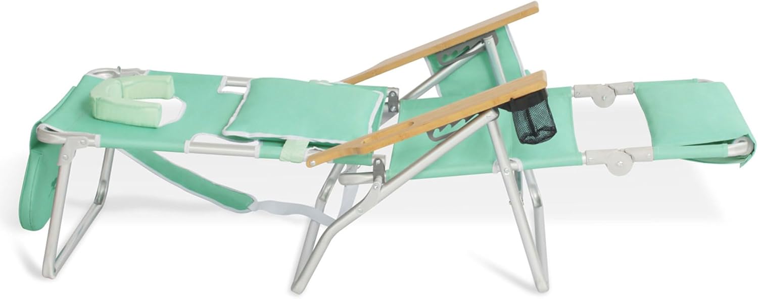 Ostrich Deluxe 3N1 Padded Beach Chair w/ Face Cushion & Arm Holes, Teal - Lightweight Folding Recliner w/ Adjustable Backrest & Footrest, Cup Holder, Side Utility Bag, 275 lb Weight Capacity