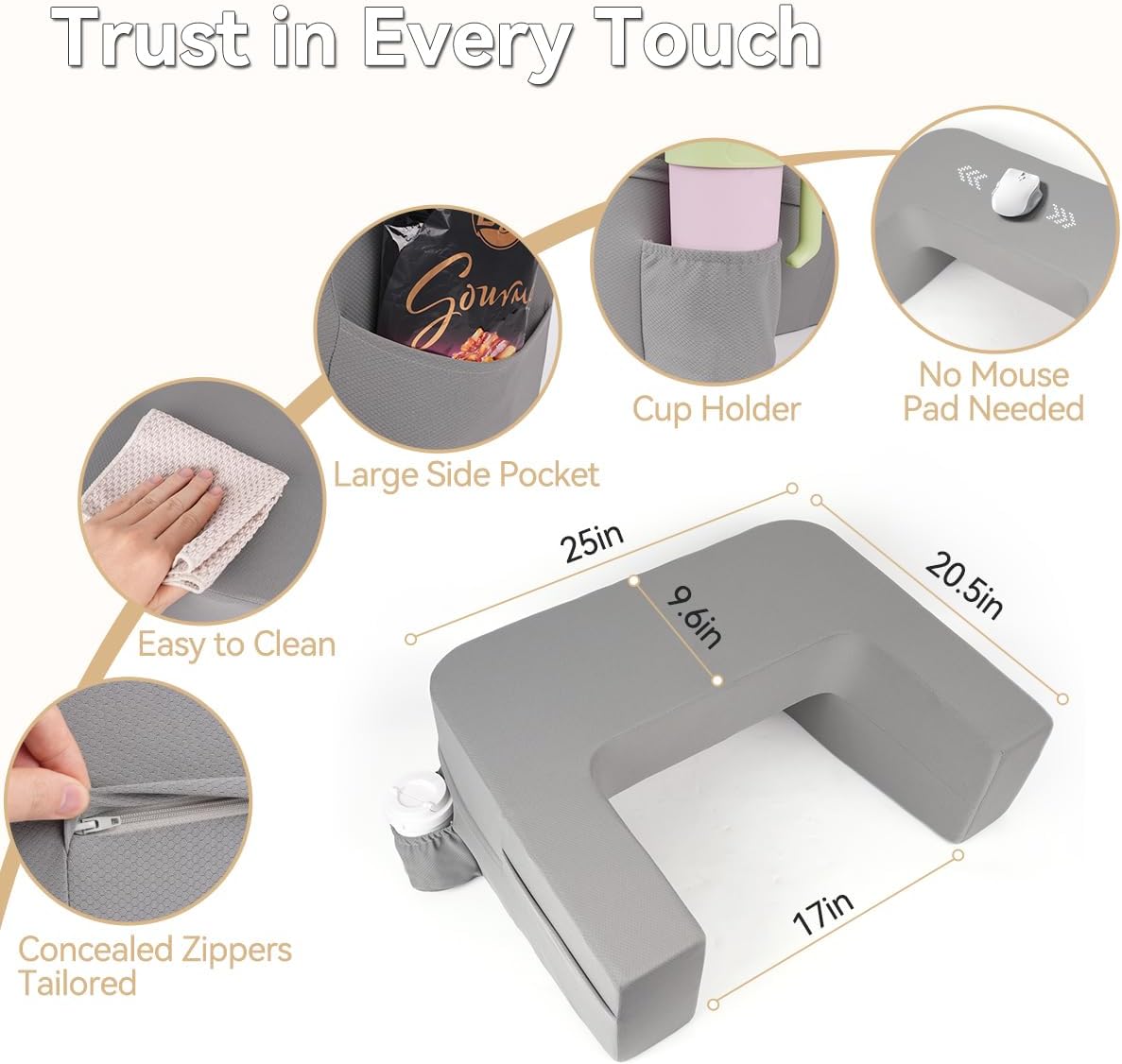 Reading Pillow for Gaming,Soft Lap Desk Pillow for Laptop,Ultimate Lap Pillow with Cup Holder Pocket,Comfort Laptop Lap Desk for Bed Couch Car (Gray, Large)